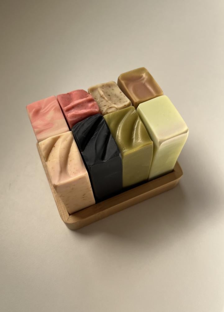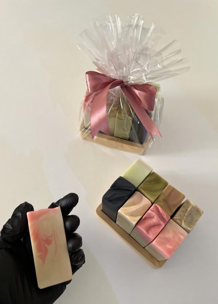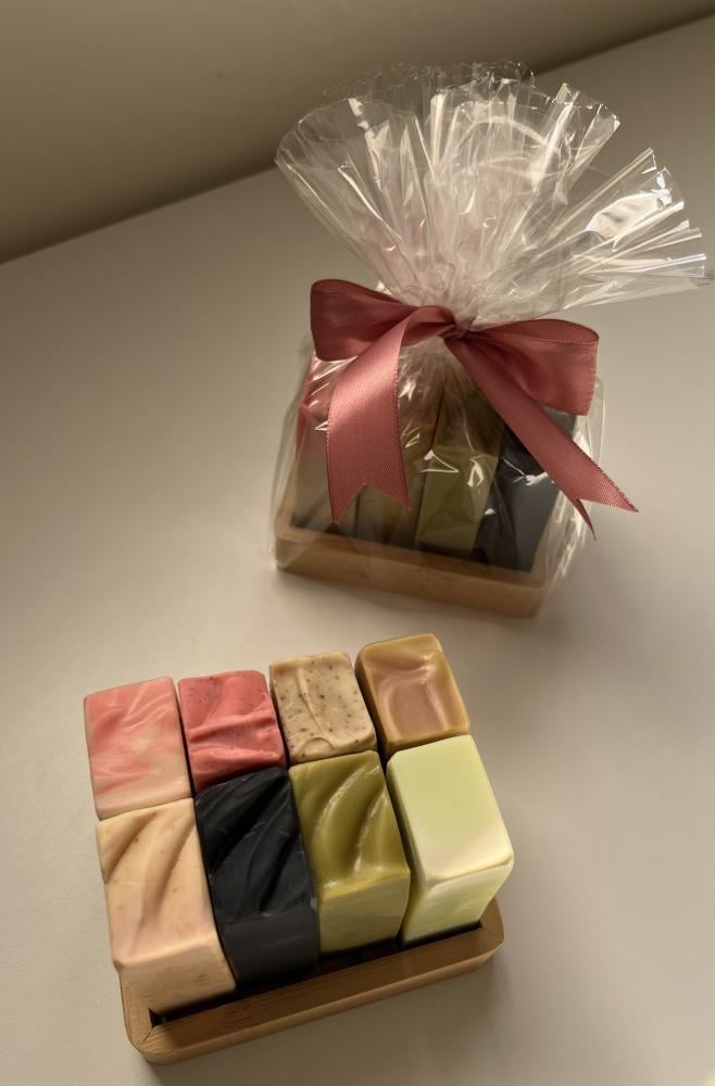 بكج جربني 8 قطع متنوعة من الصابون الطبيعي حجم وسط + قاعدة الصابون ،